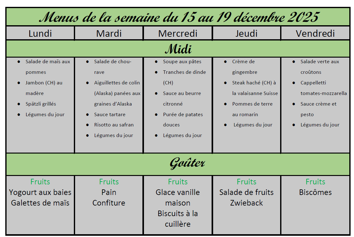 Menus du 15 au 19 décembre 2025